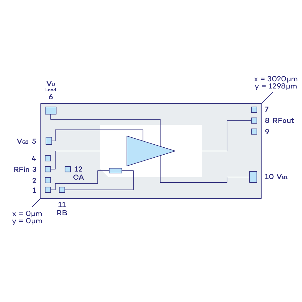 The VM056D is a power distributed amplifier designed on a 0.15μm pHEMT process. The devices is capable of more than +27dBm of output power at saturation regime, and provides more than 15dB of gain from 1 to 20GHz with less than 1dB of flatness with an excellent group delay between 6-18GHz in typical application. The design has been optimized to provide high efficiency, supply current is as low as 290mA with Vd= +8V.