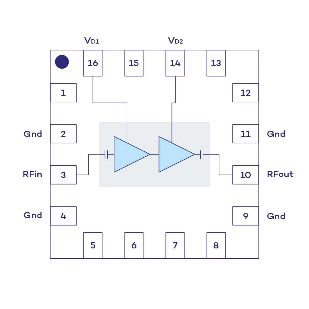 The device has a linear gain of 19 dB and a typical noise figure of 1.0 dB. Typical operating supply current is only 30 mA with a supply voltage at +3 V. It is manufactured on a PHEMT Technology and is especially suited for radar and for telecommunication applications.
